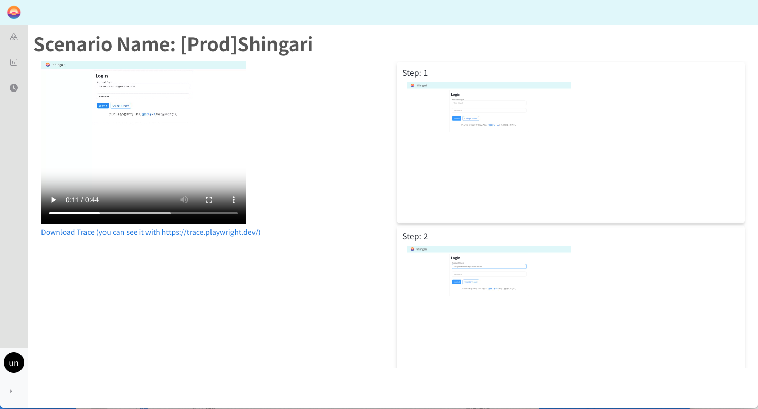 テスト実行結果をレコーディングやログとともに見ることができます。